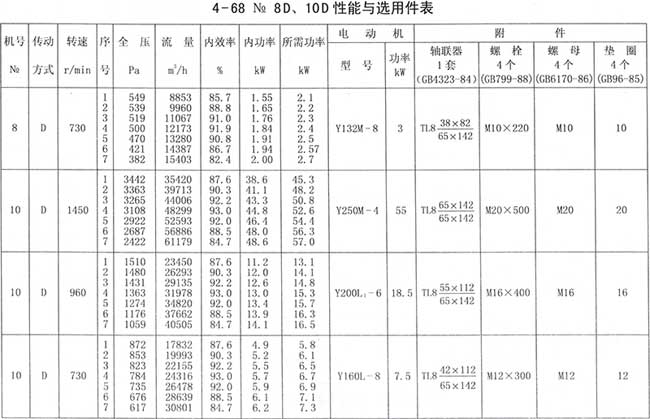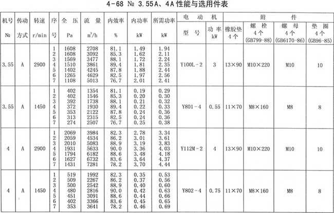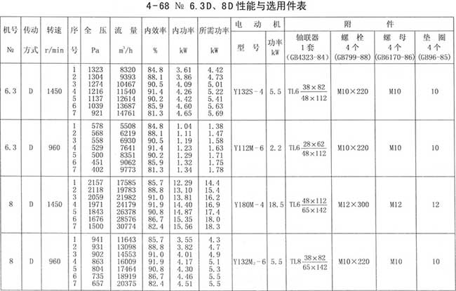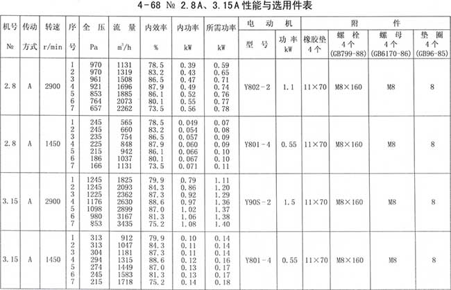 4、周口4-68離心風(fēng)機性能與選用件表